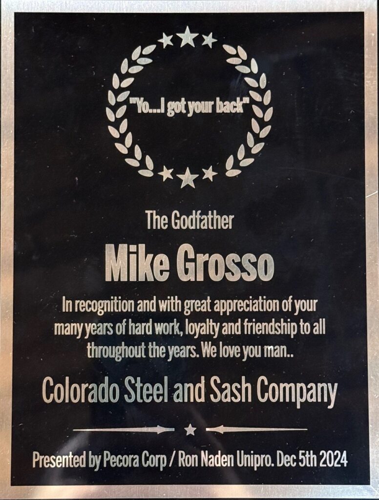 It is with sadness that we must report the passing of our beloved friend and coworker Mike Grosso. Mike passed away on September 16, 2025 while being cared for by his doctors and family. For 27 years, Mike was a cornerstone of Colorado Steel Sash, and a true friend who cared greatly for everyone that had the opportunity to get to know him.
