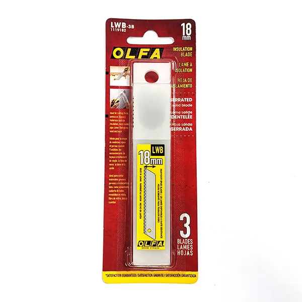 Description | The OLFA Heavy-Duty Serrated-Edge Insulation Blade is manufactured from high-quality Japanese tool steel. These professional blades deliver durable, lasting performance. Each blade is precision honed for unparalleled sharpness and edge retention. Fully extend the Heavy-Duty Serrated-Edge Insulation Blade for cutting through thicker or porous materials such as foam board and insulation. |
